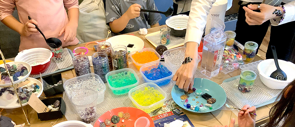 透明なカップの中で、色が重なり、光がゆらめき、まるで本物の海みたい!?「 どんな色にしよう?」「なにを入れよう?」