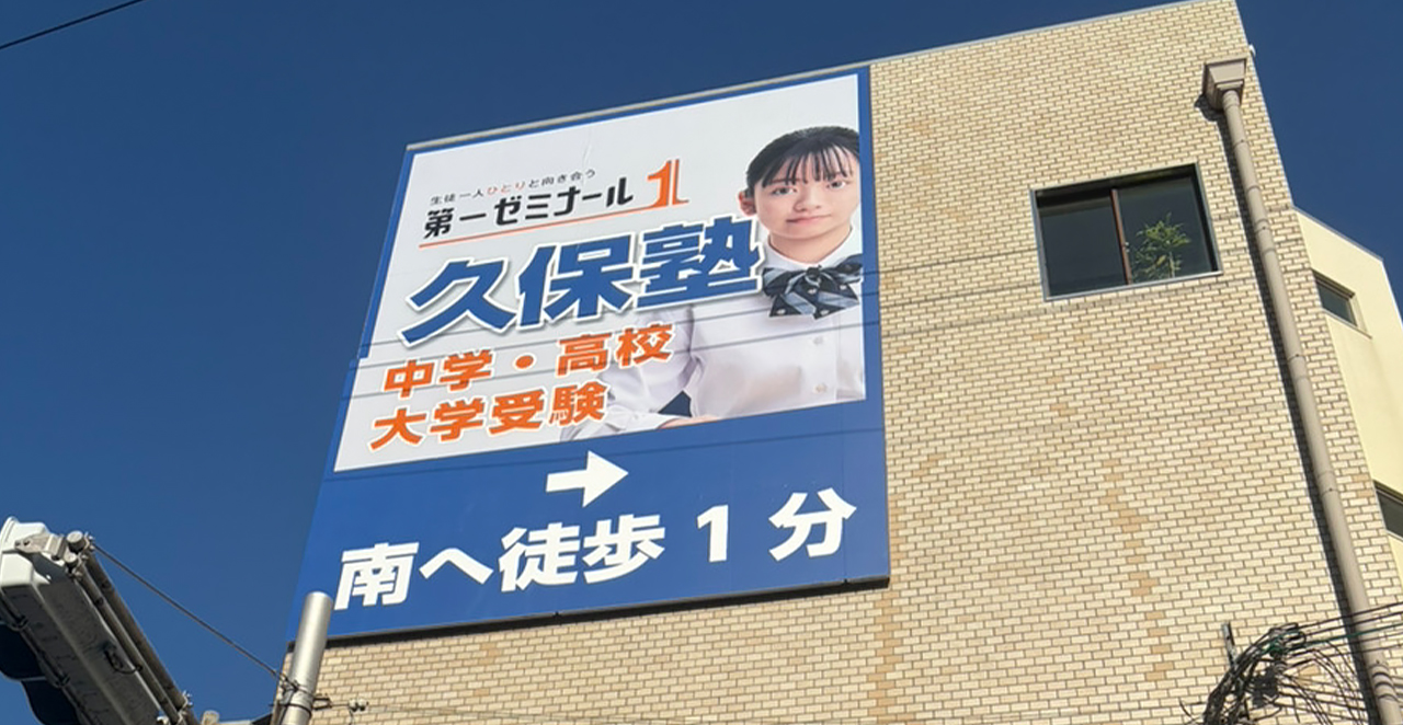 存在感抜群の大看板!久保塾発祥の地の御影教室は老舗塾の伝統を受け継ぐとともに、未来に向かっていく生徒たちとともに成長と進化を続けていきます!